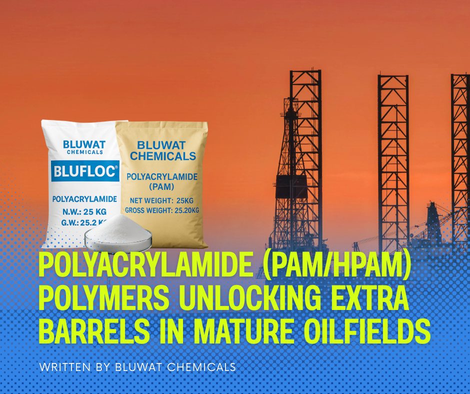 Bluwat Chemicals provides engineered PAM/HPAM polyacrylamide polymers for advanced polymer flooding, improving mobility control, sweep efficiency, and recovery performance in mature oilfields.