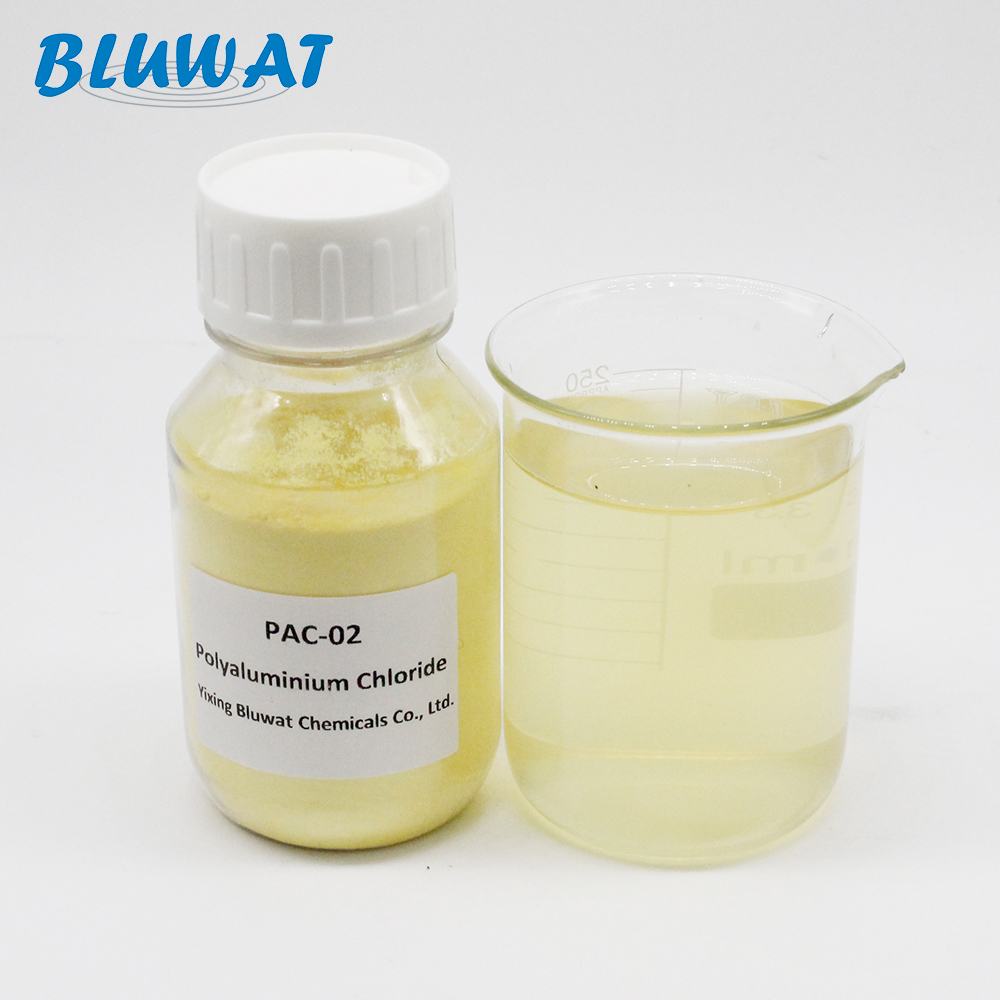 BLU PAC-02 type, is Polyaluminum Chloride of spray drying type, pale yellow powder, used for drinking water treatment and paper mills as retention agent, work as coagulant for water treatment. It is made from purity raw materials of Al(OH)3. Food grade.